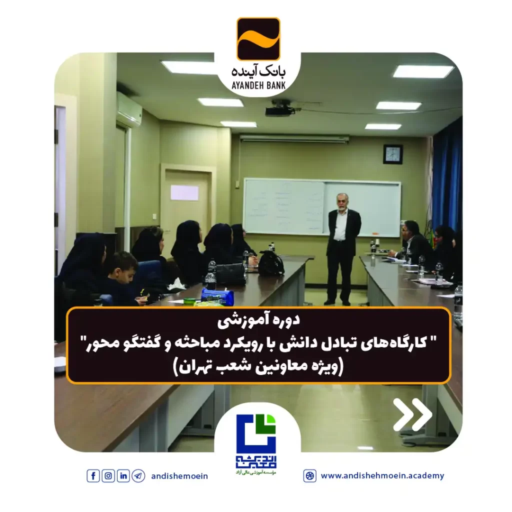 Considering the important role of modern and practical methods of education in improving the knowledge level of branch colleagues, as well as changing the approach from conducting theory-based training courses to conducting case studies and discussion-based workshops, with the aim of examining and explaining credit issues through discussion and dialogue. Educational course “Knowledge exchange workshops with discussion and dialogue-oriented approach” It was held for the deputies of Tehran branches from 09/04/1402 to 09/08/1402 on Saturdays, Mondays and Wednesdays at Moein Andisheh Institute and was taught by Mr. Shafghati, the honorable head of the independent branch of Argentinian Square.