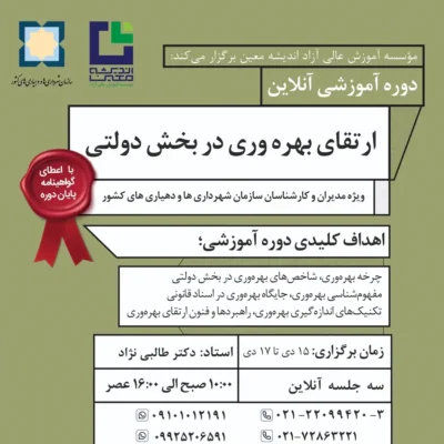 برگزاری دوره آموزشی «ارتقای بهره وری در بخش دولتی» ویژه کارکنان شهرداریها و دهیاریهای کشور بیشتر بخوانید